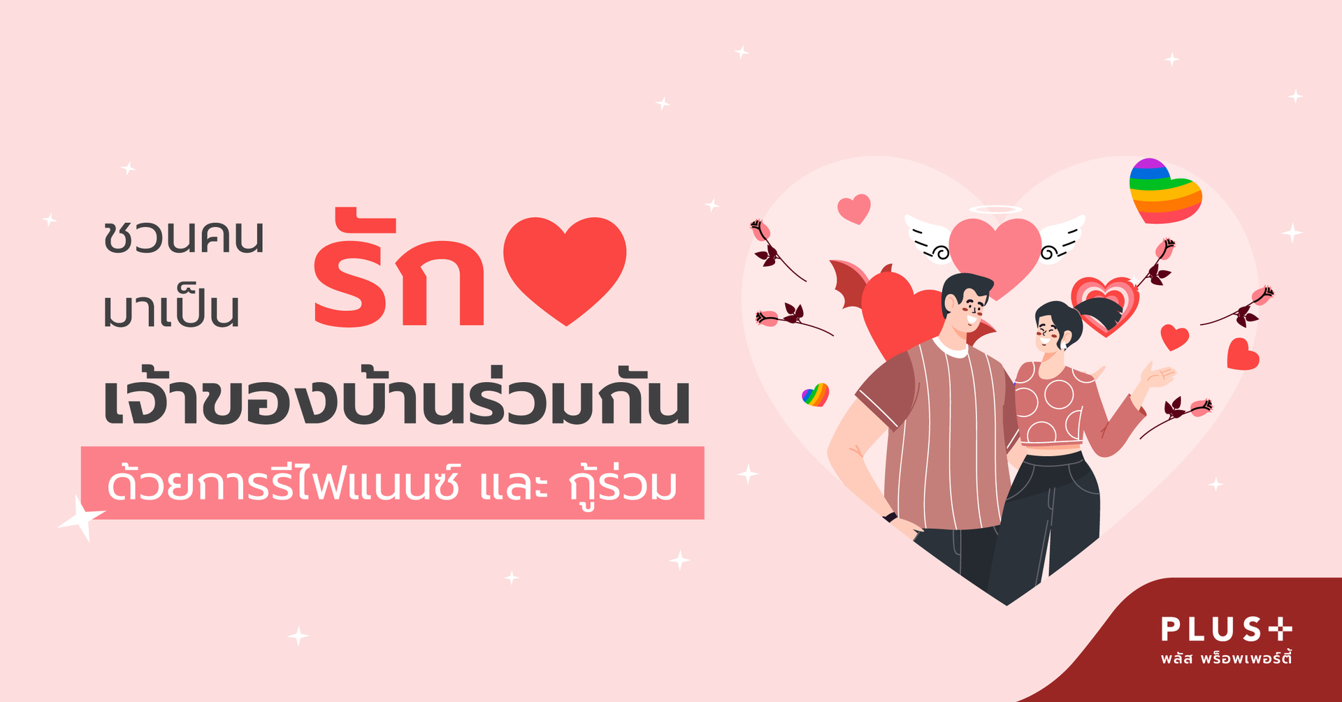 สำหรับตัวอย่างจากเคสนี้ ลูกค้าเก่าของพลัสฯ ได้ แวะเวียนมาหาเราพร้อมกับคนรู้ใจ มาพร้อมข่าวดีที่กำลังจะสละโสด จึงได้ทราบว่าคอนโดหนุ่มโสดที่ทางเราช่วยสรรหาให้ลูกค้าเมื่อ 4 ปีที่แล้ว ตอนนี้แปรสภาพกลายเป็นเรือนหอไปแล้ว