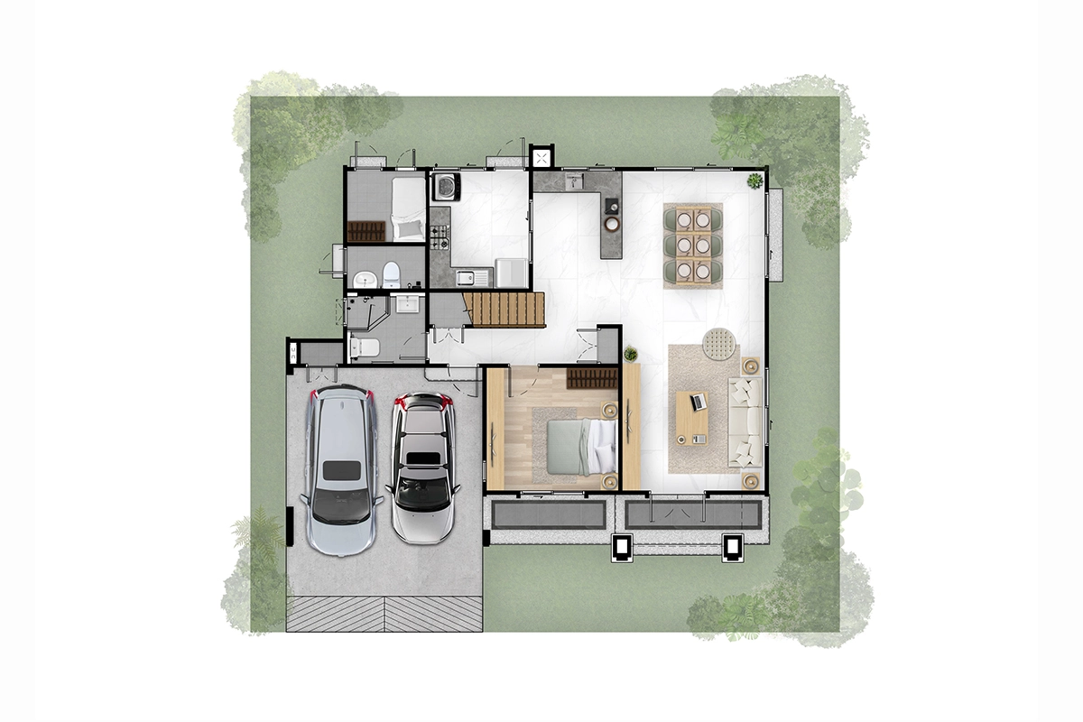 จึงออกแบบบ้านให้มีความหลากหลาย ทั้งดีไซน์