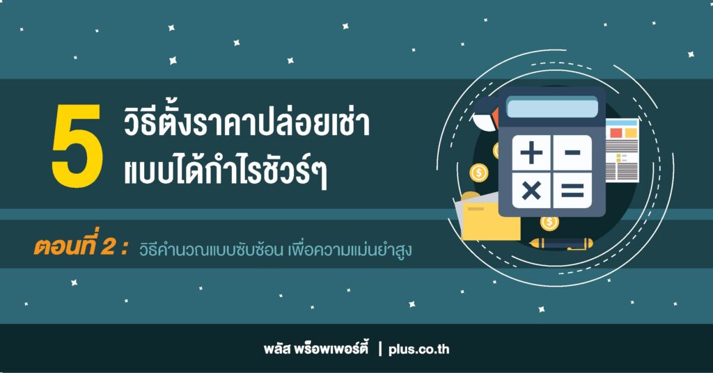 จากบทความที่แล้ว พลัส พร็อพเพอร์ตี้ ได้นำวิธีการคำนวณหาค่าเช่าด้วยวิธีคำนวณแบบง่ายเพื่อตั้งราคาได้รวดเร็วมาฝากกันนะคะ หากใครสนใจวิธีนี้สามารถย้อนกลับไปอ่านได้เลยค่ะ คลิกอ่าน 5 วิธีตั้งราคาปล่อยเช่า แบบได้กำไรชัวร์ๆ ตอนที่ 1 วิธีคำนวณแบบง่าย ตั้งราคาได้รวดเร็ว ซึ่งในบทความนี้ยังมีอีก 2 วิธีที่สามารถช่วยให้เราคำนวณค่าเช่าแบบแม่นยำมากขึ้น โดยมีการนำเอา Rental Yield เข้ามาประกอบการคำนวณ รวมทั้งคิดครอบคลุมค่าใช้จ่ายต่างๆ ที่เกิดขึ้นอันเป็นหนึ่งในต้นทุนด้วย ซึ่งทั้ง 2 วิธีนี้จะมีวิธีการคำนวณที่ค่อนข้างซับซ้อนอยู่พอสมควร แต่ก็ไม่ยากจนเกินความสามารถ เพียงแต่อาจจะมีหลายขั้นตอนมากหน่อย ไปติดตามกันได้เลยค่ะ 4. ตั้งราคาแบบเปรียบเทียบอัตราผลตอบแทนจากการปล่อยเช่า (Rental Yield) ระดับความยากง่ายในการคำนวณ: ซับซ้อน ระดับความแม่นยำ: 4/5 การคำนวณด้วยวิธีนี้อาจมีวิธีคำนวณที่ค่อนข้างซับซ้อนแต่ได้ผลที่ค่อนข้างแม่นยำ เพราะเราต้องคำนวณหาผลเฉลี่ยอัตราผลตอบแทนจากการปล่อยเช่า (Rental Yield) ในพื้นที่นั้นก่อน เพราะแต่ละพื้นที่จะมีอัตราผลตอบแทนที่แตกต่างกัน โดยส่วนใหญ่จะคิดเป็นเปอร์เซนต์ เพื่อที่เราจะได้นำค่าเฉลี่ยนั้นมาคำนวณหาราคาปล่อยเช่าให้กับห้องของเราได้ ซึ่งเราสามารถคิด คำนวณหา Rental Yield ในพื้นที่นั้นๆ ได้ด้วยตนเอง หรือค้นหาข้อมูลผลตอบแทนการลงทุนจากโครงการได้จากแหล่งข่าวที่น่าเชื่อถือ เมื่อเราได้ค่าเฉลี่ยผลตอบแทนมาแล้วให้นำมาคูณกับราคามูลค่าโครงการที่ซื้อมา และนำไปหารด้วย 12 เพียงเท่านี้เราก็จะได้ราคาปล่อยเช่าในแต่ละเดือน Example ตัวอย่างการตั้งราคาแบบเปรียบเทียบอัตราผลตอบแทน (Rental Yield) ต้องการปล่อยเช่าคอนโดย่านพร้อมพงษ์ ห้องชุดที่ต้องการปล่อยเช่าอยู่ย่านอโศก ซื้อมาในราคา 5,500,000 บาท ขนาด 1 ห้องนอน อ่านจากหนังสือพิมพ์พบว่าอัตราผลตอบแทนเฉลี่ยจากการปล่อยเช่าในย่านนี้อยู่ที่ประมาณ 6% ต้องตั้งราคาค่าเช่าเท่าไหร่จึงจะได้กำไร ขั้นตอนที่ 1 คำนวณหาอัตราผลตอบแทนต่อปี สูตร ราคาห้องชุด x อัตราผลตอบแทน(%) วิธีทำ 5,500,000 x 6% = 330,000 ตอบ ห้องชุดนี้มีอัตราผลตอบแทนอยู่ที่ 330,000 บาท/ปี ขั้นตอนที่ 2 คำนวณหาผลตอบแทนต่อเดือน สูตร อัตราผลตอบแทนต่อปี ÷ 12 วิธีทำ 330,000 ÷ 12 = 27,500 คำตอบสุดท้าย ควรตั้งราคาค่าเช่าเริ่มต้นที่ 27,500 บาท/เดือน (สามารถคิดราคาบวก/ลบเพิ่มจากราคาตั้งต้นนี้ หากห้องที่ปล่อยเช่ามีการตกแต่งเพิ่มเติม) 5. ตั้งราคาแบบคำนวณจากต้นทุนทั้งหมด ระดับความยากง่ายในการคำนวณ: ซับซ้อน ระดับความแม่นยำ: 5/5 การเลือกวิธีคำนวณด้วยวิธีนี้เป็นวิธีที่ซับซ้อนที่สุดจากที
