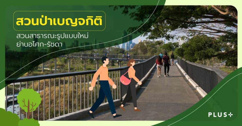 สวนป่าเบญจกิติ สวนสาธารณะรูปแบบใหม่ย่านอโศก-รัชดา เมื่อเร็วๆ นี้ ชาวกรุงเทพฯ ได้รับมอบสวนสาธารณะที่เพิ่งเปิดตัวใหม่ในย่านอโศก-รัชดา นั่นคือสวนป่าเบญจกิติเฟส 2-3 ที่จะเข้ามาเป็น “ระบบนิเวศ” แห่งใหม่ใจกลางกรุง เพราะที่นี่จะไม่ใข่แค่สวนสาธารณะ แต่จะเข้ามายกระดับสภาพแวดล้อม และมอบคุณค่าแก่ชาวเมือง ทั้งในแง่การพักผ่อนหย่อนใจ การศึกษาธรรมชาติ และการเป็นพื้นที่ช่วยลดภัยธรรมชาติในอนาคตข้างหน้าอีกด้วย จากโรงงานยาสูบสู่สวนสาธารณะ สวนเบญจกิติแต่เดิมเป็นพื้นที่ตั้งของโรงงานยาสูบ ซึ่งหลังจากโรงงานได้ย้ายไปอยู่ที่จังหวัดอยุธยา พื้นที่นี้จึงได้รับการปรับเปลี่ยนให้เป็นสวนสาธารณะที่มีขนาดกว่า 450 ไร่ โดย “สวนเบญจกิติ” เปิดให้บริการตั้งแต่ปี 2547 มีบึงใหญ่อยู่ตรงกลางล้อมรอบไปด้วยพื้นที่สำหรับวิ่ง เดิน ปั่นจักรยาน ซึ่งพื้นที่เฟสใหม่ที่เรากำลังจะกล่าวถึงนี้ ได้รับการพัฒนาให้เป็น “สวนป่าเบญจกิติ” และเพิ่งได้มีการเปิดให้เข้าชมได้เมื่อปลายปีที่ผ่านมา ระบบนิเวศที่หล่อเลี้ยงตัวเองได้ ขอบคุณภาพจาก wikipedia สำหรับแนวคิดการพัฒนาสวนป่าเบญจกิติเฟส 2-3 นี้เรียกได้ว่ามีความพิเศษกว่าที่อื่นๆ เพราะถือเป็นการสร้างนิยามใหม่ของสวนสาธารณะที่ไม่ใช่แค่การจัดสวนตาม Landscape เท่านั้น แต่ที่นี่ยังถูกออกแบบให้เป็น “ป่าขนาดย่อม” ที่สามารถเจริญเติบโตไปพร้อมกับเมือง และเน้นสะท้อนความจริงของธรรมชาติ ตัวอย่างเช่น พันธ์ไม้ที่จะผลัดใบและเปลี่ยนสีสันตามฤดูกาลและสภาพแวดล้อม โดยไม่จำเป็นต้องเขียวชอุ่มตลอดปี แถมยังมีพื้นที่จัดไว้สำหรับ “เกาะต้นไม้กลางบึง” ที่มีร่องน้ำไว้ทำหน้าที่กักเก็บและบำบัดน้ำเสีย พร้อมให้รากต้นไม้ดูดซับน้ำไปใข้หล่อเลี้ยงตัวเองได้ และพื้นที่ชุ่มน้ำส่วนนี้ยังสามารถรองรับน้ำฝนเพื่อป้องกันอุทกภัยที่อาจจะเกิดขึ้นในอนาคตได้อีกทางหนึ่งด้วย แหล่งแฮงเอาท์ใหม่ฟังก์ชันจัดเต็ม ขอบคุณภาพจาก City Cracker นอกจากพื้นที่สีเขียวแล้ว สวนป่าเบญจกิติเฟส 2-3 ยังออกแบบสิ่งปลูกสร้างให้เป็นสถานที่พักผ่อนหย่อนใจที่แท้จริงของคนเมือง ไม่ว่าจะเป็น Skywalk ที่ออกแบบให้มีความต่างระดับ ลาดชันบ้าง คดเคี้ยวบ้าง เพื่อเปิดมุมมองให้คนได้เดินชมสวนป่าแบบสมจริง พร้อมจุดถ่ายรูปวิว Panorama ให้แชะแชร์ผ่านโซเชียล และในส่วน Pavilion หรือศาลาชมวิว ที่สร้างไว้ตามจุดต่างๆ ให้เป็นพื้นที่พูดคุยสันทนาการและยังสามารถมองเห็นวิวสวนป่าและบรรยากาศโดยรอบได้ แถมยังมี Amphitheatre หรือ อัฒจันทร์อเนกประสงค์กลางแจ้ง ที่ให้คนมาทำกิจกรรมได้อย่างไม่จำกัด ไม่ว่าจะเป