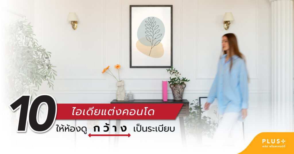 คอนโดเป็นอีกหนึ่งทางเลือกการอยู่อาศัยของคนรุ่นใหม่ เพราะอำนวยความสะดวกให้กับชีวิตได้ในหลายๆ ด้าน แต่ด้วยขนาดพื้นที่จำกัดอาจทำให้ห้องดูรกและคับแคบได้ หากไม่ได้รับการจัดระเบียบ และตกแต่งอย่างเหมาะสม ในบทความนี้ พลัสฯ ขอมาเอาใจชาวคอนโดด้วย 10 ไอเดียแต่งคอนโด เพื่อช่วยให้ห้องดูกว้าง เป็นระเบียบ และน่าอยู่มากยิ่งขึ้น พร้อมแนะนำ 5 คอนโดตกแต่งครบ พร้อมอยู่ รวม 10 ไอเดียแต่งคอนโด การแต่งคอนโดสวยๆ สามารถทำได้ไม่ยาก เพียงทำตาม 10 ไอเดีย ดังนี้ 1. เลือกใช้สีผนังห้องโทนกลาง-โทนสว่าง การเลือกใช้สีผนังโทนกลาง-สว่างจะช่วยให้ห้องดูโล่งโปร่ง สบายตา และอบอุ่นมากกว่าผนังสีโทนทึบ ยกตัวอย่างสีขาว สีเบจ สีเทาอ่อน และสีฟ้าอ่อน เป็นต้น โดยสามารถเปลี่ยนสีผนังได้ 2 วิธี คือ ใช้สีทาภายใน และติดวอลล์เปเปอร์ผนัง ซึ่งการติดวอลล์เปเปอร์จะช่วยให้การเปลี่ยนสีผนังภายในอนาคตสะดวกมากยิ่งขึ้น อีกทั้งยังสามารถเข้าอยู่ได้เลย ไม่ต้องรอสีแห้งและไม่ทิ้งกลิ่นสี 2. เลือกเฟอร์นิเจอร์ Multi-Function เฟอร์นิเจอร์ Multi-Function เป็นตัวเลือกที่ได้รับความนิยมมากในปัจจุบัน เช่น เตียงนอนที่มีลิ้นชักเก็บของด้านใต้ ตู้เสื้อผ้าที่มาพร้อมโต๊ะเครื่องแป้ง เก้าอี้มีช่องเก็บของด้านใน และอื่นๆ โดยการใช้เฟอร์นิเจอร์เหล่านี้จะช่วยให้เก็บของได้อย่างมีระเบียบมากยิ่งขึ้น พร้อมลดการวางของกระจัดกระจายที่ทำให้ห้องดูรกและแคบ 3. เลือกใช้ผ้าม่าน 2 ชั้น (ผ้าม่านทึบ-ผ้าม่านโปร่ง) ข้อดีของผ้าม่าน 2 ชั้น คือ สามารถเลือกปิดผ้าม่านทึบได้ในเวลากลางวันที่แดดจัด และสามารถเลือกปิดผ้าม่านโปร่งได้ในช่วงเย็น-กลางคืน ซึ่งผ้าม่านทึบจะช่วยลดความร้อน และรังสียูวีที่เข้ามาในห้อง ในขณะที่ผ้าม่านโปร่งจะช่วยให้ห้องดูโล่ง สบายตา และทำให้แสงธรรมชาติเข้ามาในห้องได้มากยิ่งขึ้น 4. ตกแต่งผนังด้วยกระจกเงา การตกแต่งผนังด้วยกระจกเงาจะช่วยพรางตาให้ห้องดูมีพื้นที่มากยิ่งขึ้น ซึ่งเป็นวิธีที่นิยมใช้ในการตกแต่งคอนโดขนาดเล็ก และอะพาร์ตเมนต์ที่มีพื้นที่จำกัด 5. กั้นห้องด้วยกระจกใส การกั้นห้องจะทำให้พื้นที่อยู่อาศัยเป็นสัดส่วนมากยิ่งขึ้น โดยให้เลือกใช้บานเลื่อนที่เป็นกระจกใสแทนประตูไม้ หรือประตูพลาสติกที่มีความทึบ เพราะกระจกใสมีความโปร่งแสง ซึ่งจะทำให้ห้องดูกว้างขึ้นและไม่อึดอัด 6. เลือกใช้โต๊ะ ตู้ และชั้นวางของติดผนัง นอกจากโต๊ะ ตู้ และชั้นวางของติดผนังจะช่วยเพิ่มพื้นที่จัดเก็บของใช้ต่างๆ ได้แล้ว ยังช่วยให้ไม่เปลืองพื้นที่บนพื้น ส่งผลห้องดูกว้างขึ้น 7. จัดเฟอร์นิเจอร์เข้ามุ
