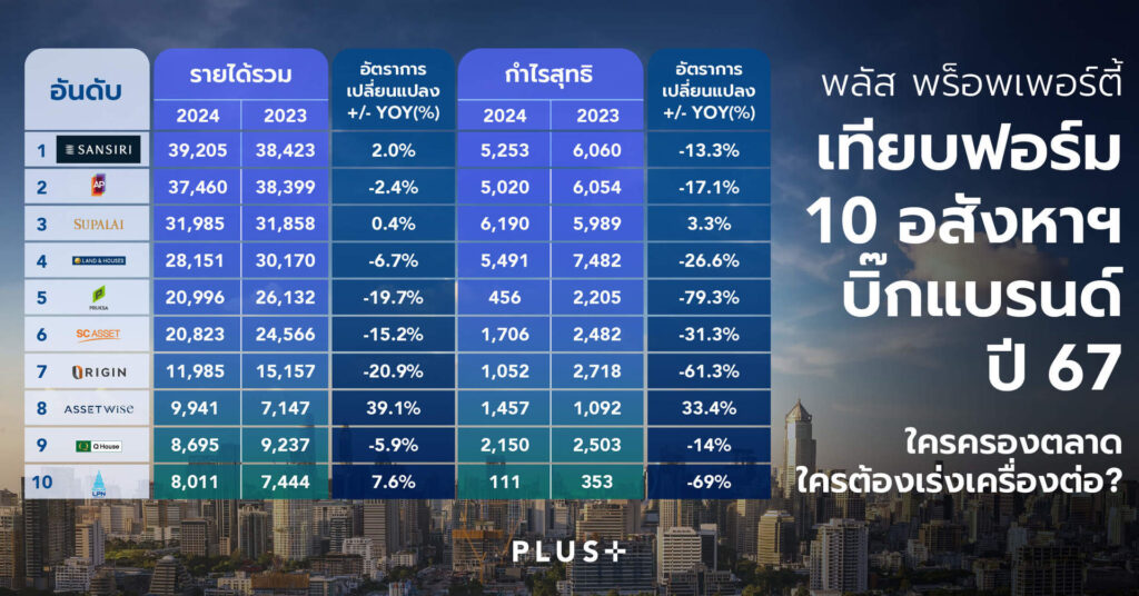 พลัส พร็อพเพอร์ตี้ เทียบฟอร์ม 10 อสังหาฯ บิ๊กแบรนด์ ปี 67