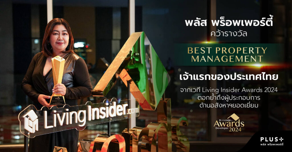 พลัส พร็อพเพอร์ตี้ ผู้เชี่ยวชาญด้านการบริหารจัดการอสังหาริมทรัพย์ชั้นนำของไทย ประสบความสำเร็จคว้ารางวัล Best Property Management ที่มีครั้งแรก จากเวที Living Insider Award 2024 ซึ่งเป็นรางวัลที่มอบให้กับบริษัทผู้ประกอบการอสังหาริมทรัพย์เจ้าเดียวที่มีผลงานโดดเด่นและเป็นที่ยอมรับในวงการ รางวัลดังกล่าวสะท้อนให้เห็นถึงความมุ่งมั่นของพลัส พร็อพเพอร์ตี้ ในการมอบบริการที่มีคุณภาพสูงสุดให้แก่ลูกบ้าน โดยคำนึงถึงความพึงพอใจของลูกค้าเป็นสำคัญ พร้อมทั้งการพัฒนาบุคลากรให้มีความรู้ความสามารถและความเชี่ยวชาญในการบริหารจัดการโครงการอย่างมืออาชีพ นางสาวนฤมล อาภรณ์ธนกุล รองกรรมการผู้จัดการฝ่ายบริหารอาคารที่พักอาศัย บริษัท พลัส พร็อพเพอร์ตี้ จำกัด รับรางวัล Best Property Management เจ้าแรกของประเทศไทยจากเวที Living Insider Award 2024 ครั้งแรก จากบริษัท ลิฟวิ่ง อินไซเดอร์ จำกัด รางวัลนี้ได้รับการตัดสินโดยเหล่าคณะกรรมการผู้ทรงคุณวุฒิ ซึ่งมีความรู้ ความเชี่ยวชาญ และประสบการณ์ในวงการอสังหาริมทรัพย์ในประเทศไทย ให้การยอมรับว่า พลัส พร็อพเพอร์ตี้ เป็นบริษัทผู้ประกอบการอสังหาฯที่มีผลงานยอดเยี่ยมแห่งปีที่สุดในสาขา Best Property Management ทางผู้จัดงาน Livinginsider.com ได้การันตีความเป็นมืออาชีพในวงการอสังหาริมทรัพย์ไทย นางสาวนฤมล อาภรณ์ธนกุล รองกรรมการผู้จัดการฝ่ายบริหารอาคารที่พักอาศัย กล่าวว่า “รางวัลนี้เป็นเครื่องพิสูจน์ถึงความสำเร็จของการที่เราให้ความสำคัญกับการนำเสียงของลูกค้ามาปรับปรุงและพัฒนาบริการอย่างต่อเนื่อง รวมถึงการนำเทคโนโลยีมาใช้เพื่ออำนวยความสะดวกให้แก่ลูกบ้าน และการดูแลสิ่งแวดล้อมอย่างยั่งยืน” หลักเกณฑ์ที่ทำให้พลัส พร็อพเพอร์ตี้ได้รับรางวัลนี้ ได้แก่ ความพึงพอใจของลูกบ้าน พลัสฯ ให้ความสำคัญกับการรับฟังความคิดเห็นและข้อเสนอแนะจากลูกบ้าน เพื่อนำมาปรับปรุงและพัฒนาบริการให้ดียิ่งขึ้น รวมทั้งนำเทคโนโลยีมาใช้เพื่ออำนวยความสะดวกให้กับลูกบ้าน ทั้งการติดต่อสื่อสาร การบริหารจัดการโครงการเป็นไปอย่างมีประสิทธิภาพผ่าน Application อีกด้วย พัฒนาบุคลากร พลัสฯ มีสถาบันฝึกอบรม PLUS Eduplex เพื่อพัฒนาพนักงานให้มีความรู้ความสามารถและทักษะที่จำเป็นในการดูแลโครงการอย่างต่อเนื่อง และมีการอัพเดทหลักสูตรอยู่เสมอ การดูแลสิ่งแวดล้อม พลัสฯ มุ่งมั่นที่จะสร้างสรรค์ชุมชนที่อยู่อาศัยที่ดีและยั่งยืน โดยให้ความสำคัญกับการลดการใช้พลังงาน การจัดการขยะ และการเพิ่มพื้นที่สีเขียว ในโอกาสนี้ทางพลัสฯ ขอขอบคุณทุกความไว้วางใจที่มอบให้ พลัสฯ ตอกย้ำการเป็นบริษัทฯอันดับหนึ่งใ