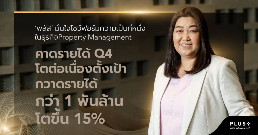 พลัส พร็อพเพอร์ตี้ โชว์ฟอร์มความเป็นที่หนึ่งในธุรกิจ Property Management คาดรายได้ Q4 โตต่อเนื่อง