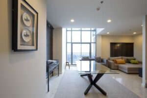 The rooftop is replete with facilities, including fitness center, infinity pool, and steam room and sauna. There is also 24-hour security with digital door locks.