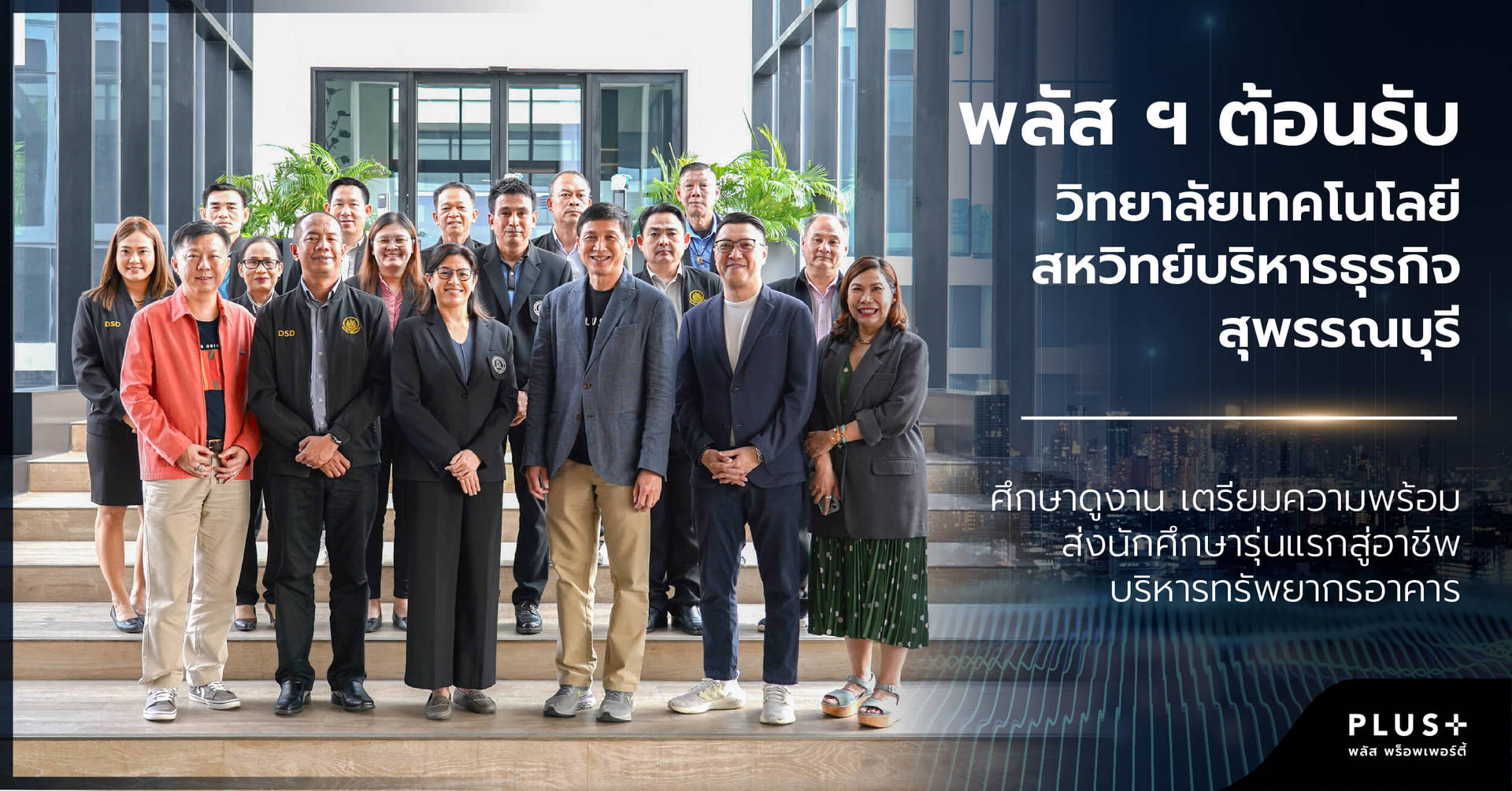 บริษัท พลัส พร็อพเพอร์ตี้ จำกัด ให้การต้อนรับคณะอาจารย์วิทยาลัยเทคโนโลยีสหวิทย์บริหารธุรกิจ จังหวัดสุพรรณบุรี และคณะเจ้าหน้าที่จากกรมพัฒนาฝีมือแรงงาน เข้าเยี่ยมชมโครงการ พร้อมศึกษาดูงานการบริหารจัดการอาคารที่เป็นความร่วมมือทางวิชาการแบบทวิภาคี สำหรับหลักสูตรใหม่ ของคณะเทคนิคการจัดการอาคาร ระดับประกาศนียบัตรวิชาชีพชั้นสูง (ปวส.)